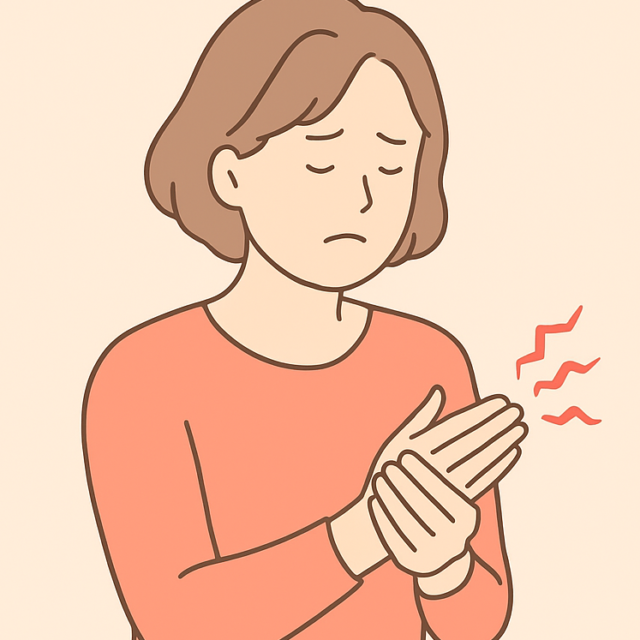 「メノポハンド」は、更年期(menopause)に関連して現れる手や指の不調を指す言葉です。女性ホルモン(エストロゲン)の急激な減少が、関節や腱に影響を及ぼし、痛みやしびれ、こわばりなどの症状が出やすくなると考えられています。